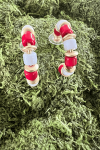 Description: Crimson/Red and White beads with gold accents are strung on a gold wire making the Jude Earring by Michelle McDowell a fun statement piece to add to any outfit! These are the perfect compliment to your gameday ensemble yet are versatile enough for daily wear!