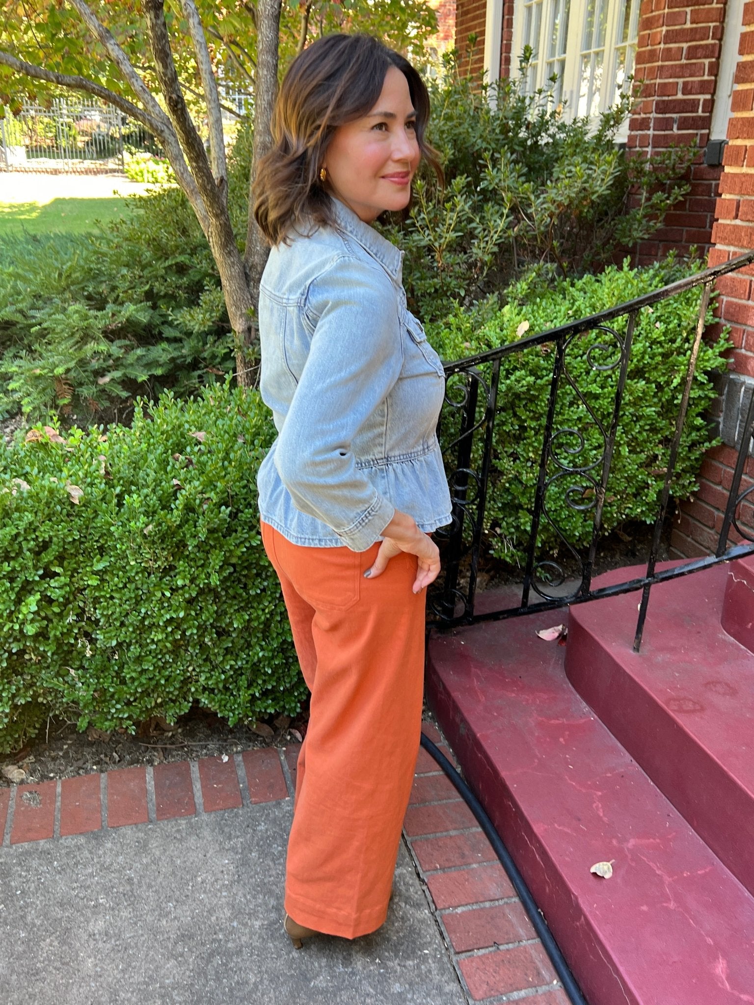 Description: Our Logan Denim Jacket redefines the classic denim staple with a unique peplum silhouette, elevating its versatility and style quotient. The flared, slightly-flounced hemline adds a touch of femininity and chicness, making it a standout piece in your wardrobe. The peplum accentuates your curves in all the right placed, creating a flattering silhouette. You'll be glad you added this unique piece to your denim wardrobe!
